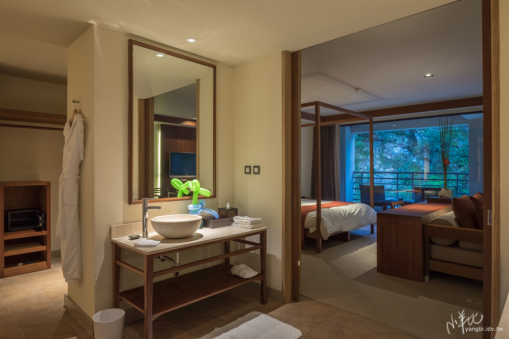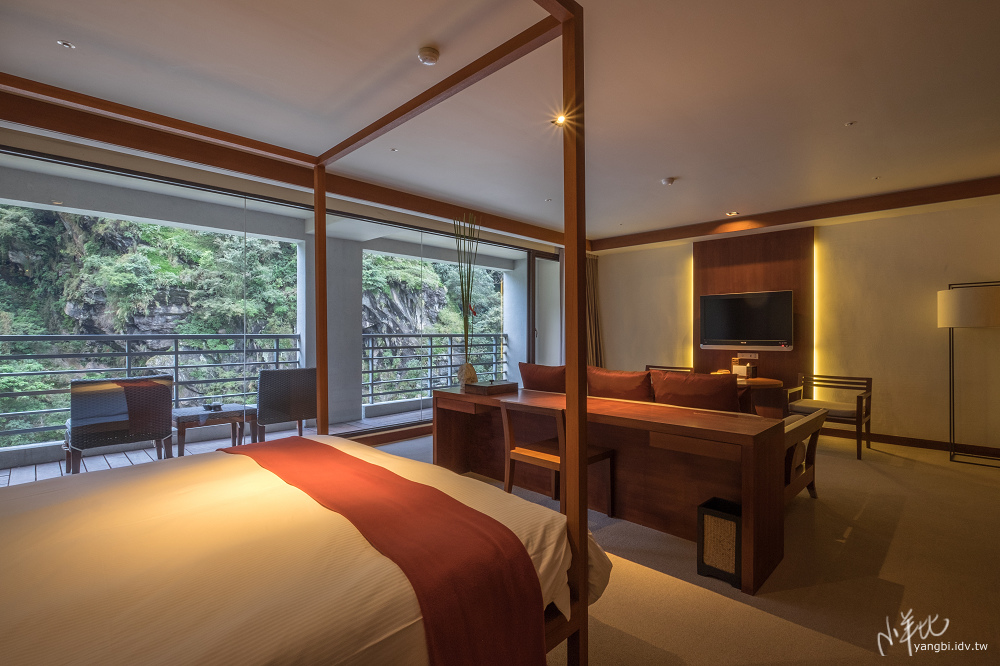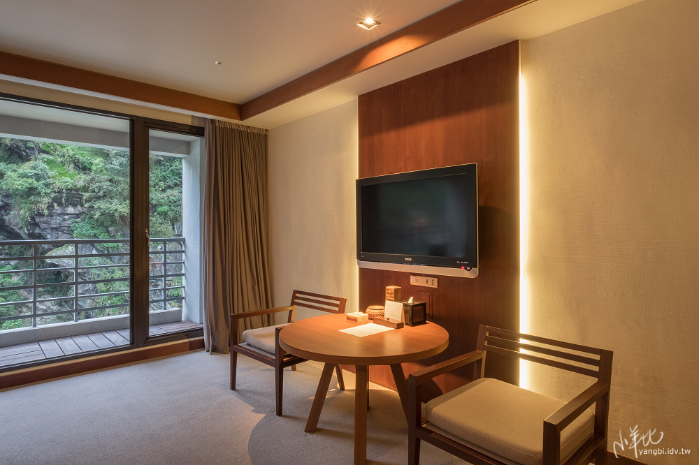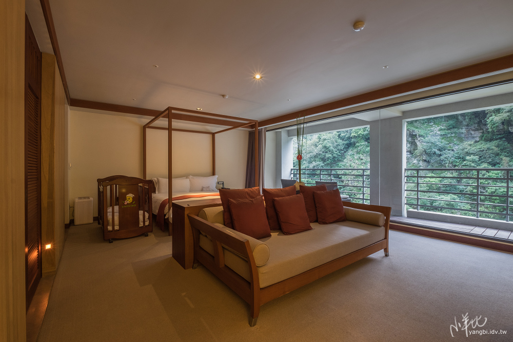 這次小羊比一家人入住的是太魯閣晶英酒店的天祥套房。一進到房間裡整面落地窗外就是太魯閣峽谷,實在太棒了!