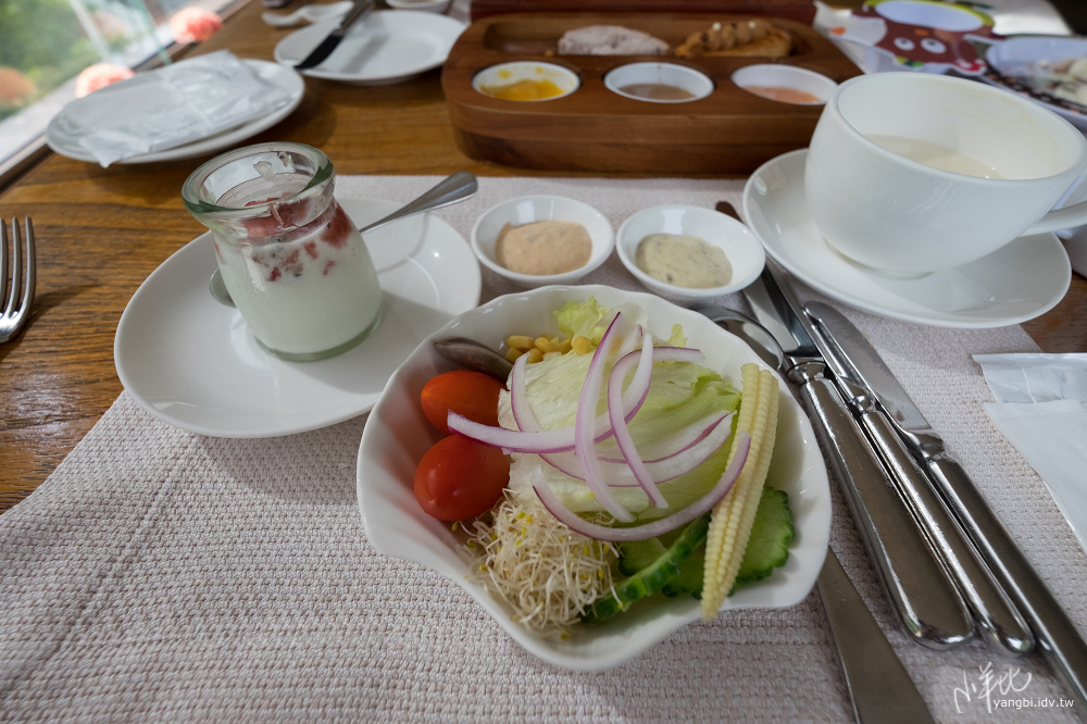 天祥套房房型是位在飯店的行館,有附免費的下午茶及酒,而用早餐的位置也可以選在同一個地方。小羊比一家人就選在同個地方吃早餐,因為有小米在所以懶得去吃Buffet早餐,雖然其實是一樣的東西。行館住宿休息室...