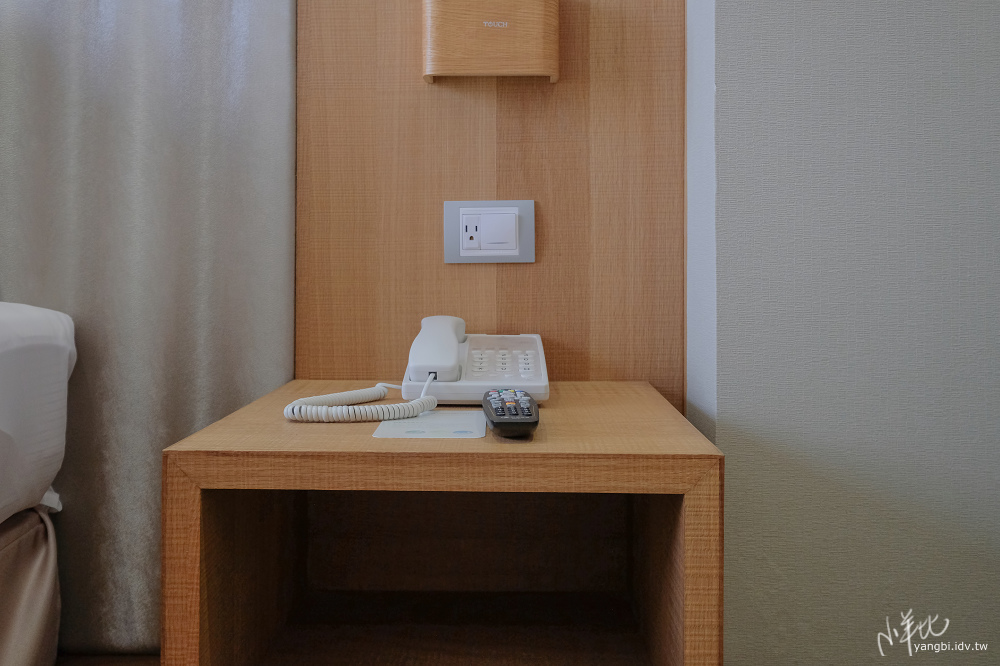 來看看床左側旁床頭櫃,有個閱讀燈及插座,飯店電話則置於此側。